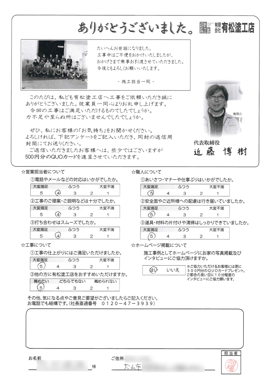 犬山市A様邸 2025/12/21 竣工2025/06/24完工2025/09/05施工内容外壁塗装・屋根塗装・ベランダ防水塗装塗料外壁:ニツペパーフェクトサーフ 212.8㎡屋根:オリェンタルエ業マイテイーシリコン ㎡防水:オルタックェース密着工法 18.9㎡総額168万円 お客様の声 調査内容 戸建 外壁塗装 防水塗装 犬山市